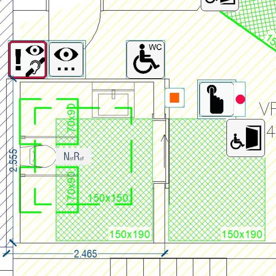 In den vergangenen Jahren habe ich meine Barrierefrei-Konzepte mit selbst erstellten Symbolen ausgeführt. Dies ist seit einiger Zeit nicht mehr notwendig, da nun einheitliche Symbole definiert wurden.
